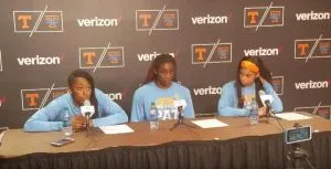 Tennessee Lady Vols head coach Holly Warlick and players Zaay Green, Cheridene Green and Evina Westbrook spoke with the media in the postgame after UT’s loss to No. 1 Notre Dame at home 77-62.