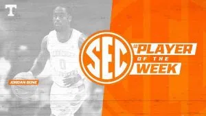 Tennessee’s Jordan Bone earned SEC co-Player of the Week honors for his performances against South Carolina and Texas A&M, as announced by the league office Monday.