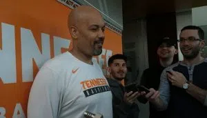 Tennessee men’s basketball associate head coach Rob Lanier spoke to the media in a group session on Thursday ahead of Tennessee’s game this Saturday at LSU. Vols Associate HC Rob Lanier / Credit: WNML Staff