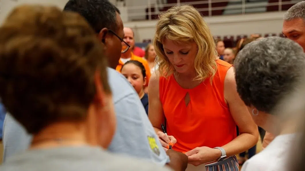 Harper, who starred for the Warriors and joins her late father, Kenneth, and brother, Brent, in the school’s athletic hall of fame, entered the venue to hearty cheers from the crowd. She spent the first part of the evening signing autographs, posing for photos and catching up with old friends, neighbors, teachers and coaches. The event was part of UT Athletics’ Summer of Smokey, an initiative that aspires to make Big Orange-flavored visits to cites and towns all over the Volunteer State.