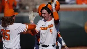 Tennessee’s offense stayed quiet until the seventh inning, when the Big Orange took a 2-0 lead on another solo home run – this time from the junior Spence. The Geelong, Australia native’s home run to left field marked his first of the season and made him the 14th Vol to go yard this season.