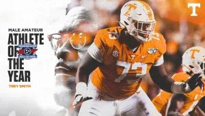 NASHVILLE, Tenn. – Tennessee Vol offensive guard Trey Smith has been tabbed as the Tennessee Co-Amateur Male Athlete of the Year, the Tennessee Sports Hall of Fame announced on Wednesday.