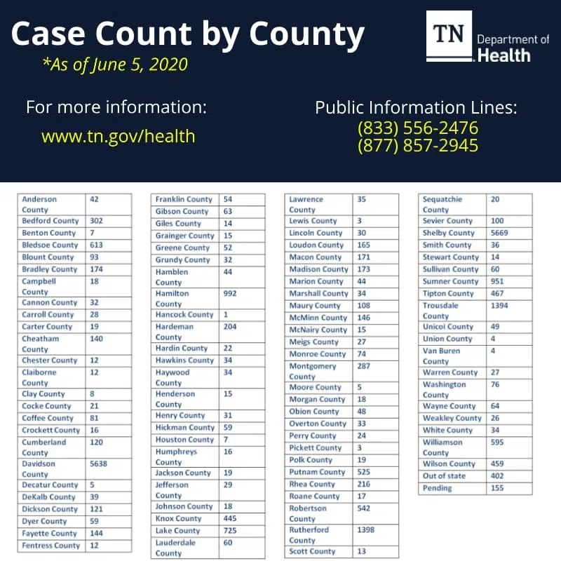 Tennessee’s new statewide COVID-19 numbers show an increase of 400 in the number of cases, that pushes the total to 25,520. There have been 16,925 recoveries and 408 deaths, 7 new, associated with COVID-19. County By County Breakdown