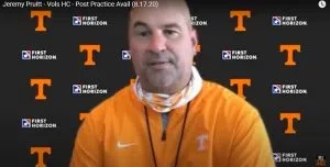 Tennessee football head coach Jeremy Pruitt spoke to the media after Vols practice 1 on Monday via Zoom. Watch it in full here. Vols HC Jeremy Pruitt / Credit: UT Athletics