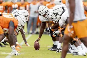 Jeremy Pruitt complemented the offensive line this week. He said they’ve moved some guys around some to give them different looks. One of those looks is swapping tackle positions with the two five-star sophomores. Darnell Wright, last season’s right tackle, has worked at left tackle with Wanya Morris, the starting left tackle all of 2019 has worked on the same line at right tackle. One 5-line group of apparent starters had Trey Smith at left guard, Brandon Kennedy at center and Jerome Carvin at right guard. Carvin and others are competing to be the one called upon if Cade Mays can’t played.