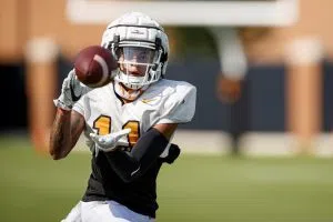 “First thing I would say is speed. That was something that we wanted to address in last year’s recruiting class. We wanted to replace the size that we lost with Jauan (Jennings) and then Quez (Marquez Callaway) as the starters, but also to upgrade in the speed department. We want to push the ball downfield vertically and we want to create matchup mismatches on offense, and you can’t do it without speed. So, the addition of Velus Jones, a transfer from USC who is someone I’m familiar with, who’s a 4.3 (40-yard dash) waking up in the morning, Jalin Hyatt, having the addition of Jimmy Holiday, Jimmy Calloway – those guys can absolutely run. So, we’re moving guys around. The one thing that I’ve been noticing about them, if you just had to sum it up in a few words, is that they can run.”