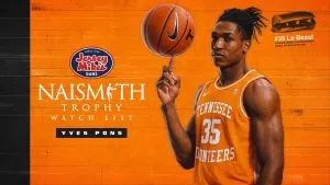 Tennessee basketball senior Yves Pons has been named to the 50-man watch list for the 2021 Jersey Mike’s Naismith Men’s College Player of the Year Trophy, the Atlanta Tipoff Club announced Thursday.