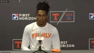 Tennessee men’s basketball forward Yves Pons spoke to the media after the Vols defeated Tennessee Tech 103-49 at home Friday night. Vols F Yves Pons / Credit: UT Athletics