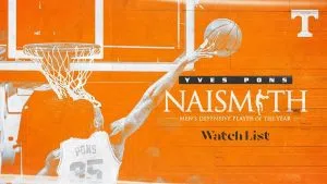 Reigning SEC Defensive Player of the Year and Tennessee basketball senior Yves Pons has been named to the 15-man watch list for the Naismith Defensive Player of the Year Award, the Atlanta Tipoff Club Announced Wednesday.