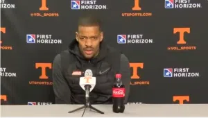 Tennessee men’s basketball assistant coach Kim English met with media Thursday to recap the South Carolina win as well as preview their upcoming matchup with Kentucky. Vols AC Kim English / Credit: WNML Staff