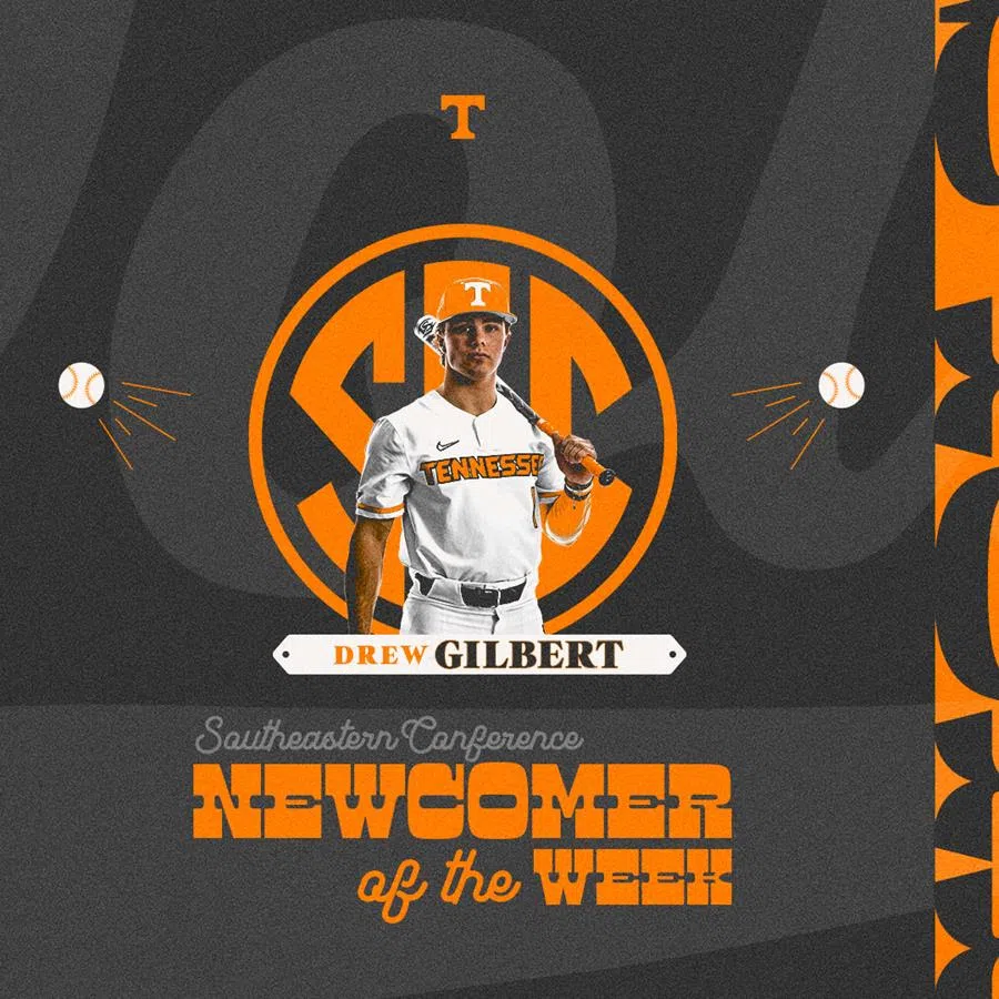 BIRMINGHAM, Ala. – Tennessee sophomore Drew Gilbert was named the SEC Newcomer of the Week for the second time this season on Monday, as announced by the league office.