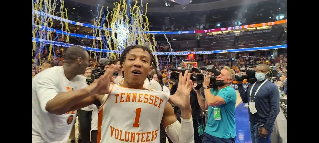 The Tennessee Volunteers won the SEC Tournament in Tampa Sunday Watch the celebration! Vols G Kennedy Chandler / Credit: UT Athletics