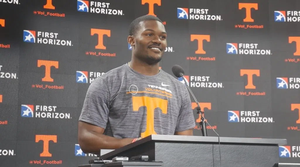 Tennessee Volunteers freshman linebacker Elijah Herring spoke with the media following Spring football practice #2 in Knoxville. Vols LB Elijah Herring / Credit: 99.1 The Sports Animal