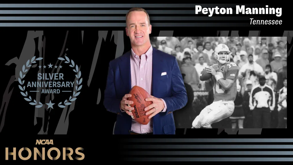 INDIANAPOLIS – Former Tennessee Volunteer quarterback Peyton Manning was selected by the NCAA for the 2023 Silver Anniversary Award, the association announced Monday afternoon.