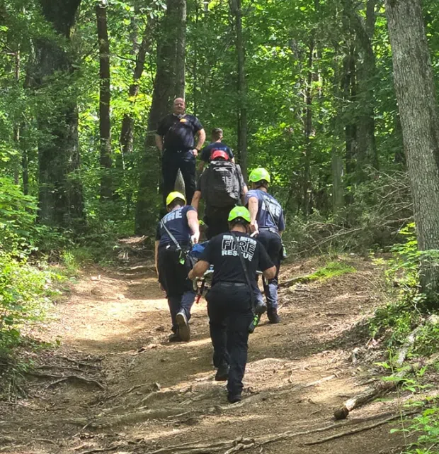 Squad crews used their wheeled litter cart or stretcher wheel cart to safely get the golfer back to the beginning of the course, about 1/4 mile. Their condition has not been released.
