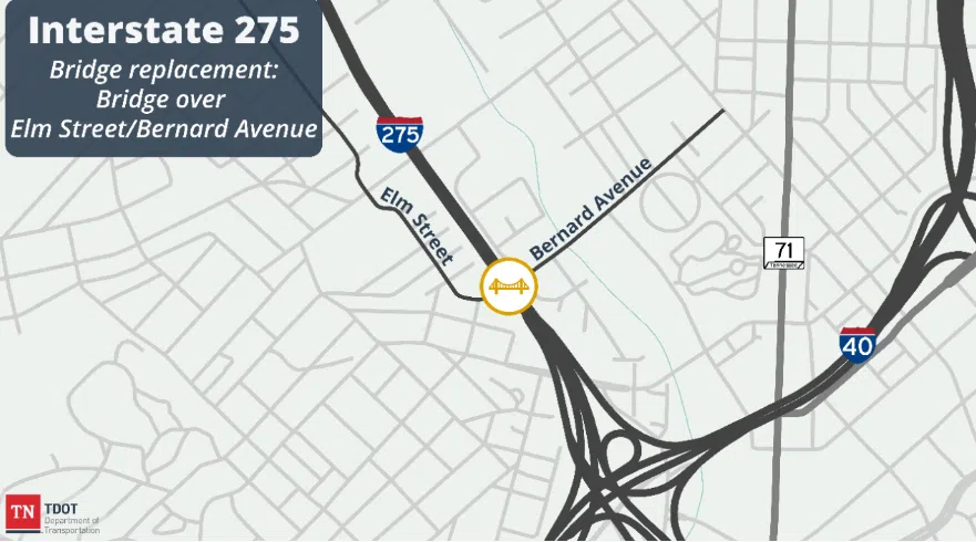 You can learn more about the I-275 bridge replacement project here: https://www.tn.gov/tdot/projects/projects-region-1/interstate-275–bridge-over-elm-street-bernard-avenue.html