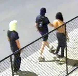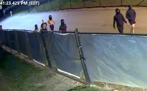 The suspects, all wearing masks that covered their faces, entered the campus on foot from West End Avenue and walked to the area where the vandalism occurred.