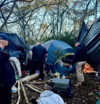 Officers found the suspect, Michael Cyrus, sitting over a fire and “tending to what appeared to be an active meth lab.”