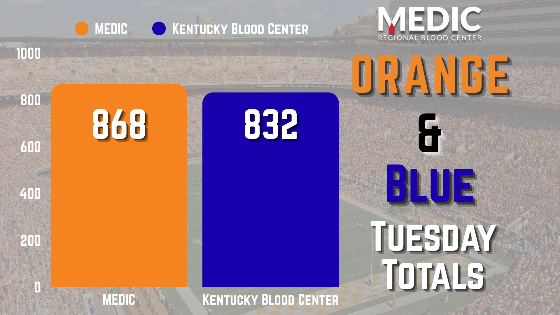 Knoxville, TN (WOKI) – The annual Orange versus Blue Blood Drive Competition between MEDIC Regional Blood Center and Kentucky Blood Center is underway to see who can collect the most blood products.