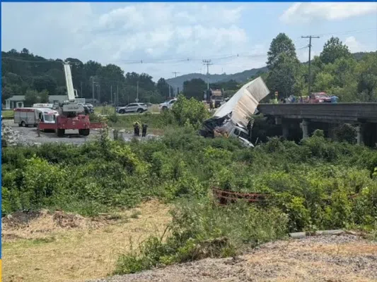 Tractor-Trailer Hangs from Bridge in Oliver Springs, Road Closed, Law Enforcement Says