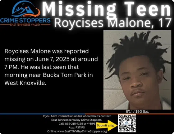 Knoxville, TN (WOKI) The Knoxville Police Department is asking for help finding a missing teen.KPD says 17-year-old Roycises Malone was last seen early Saturday, June 7 near Buck Toms Park in West Kno...
