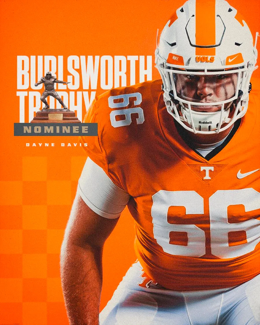 FAYETTEVILLE, Ark. - The Burlsworth Trophy selection committee announced Tuesday morning that Tennessee redshirt sophomore offensive lineman Dayne Davis is one of 88 players nominated for the 2021 Bur...