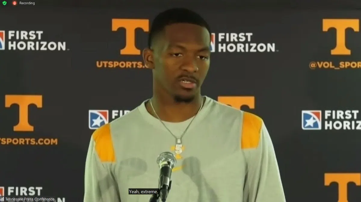 Tennessee wide receiver Cedric Tillman spoke with the media after Tennessee lost at No. 4 Alabama 52-24 Saturday night. Vols WR Cedric Tillman / Credit: UT Athletics