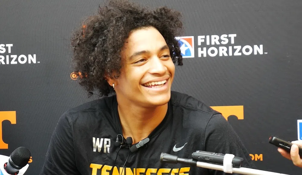 Tennessee wide receiver Jalin Hyatt spoke with the media after fall practice #11 and ahead of Tuesday’s second and final scrimmage.Vols WR Jalin Hyatt / Credit: 99.1 The Sports Animal
