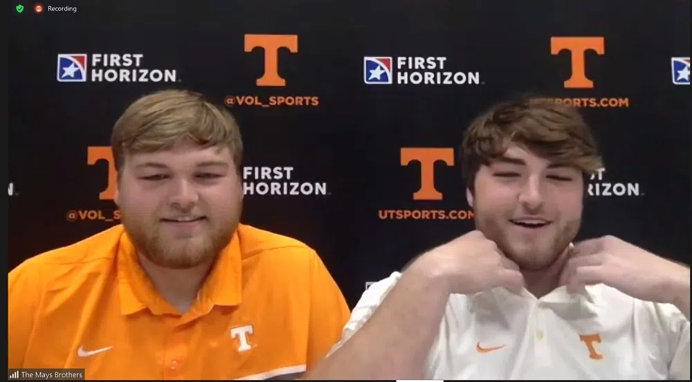Tennessee’s offensive line Mays brothers, senior Cade and sophomore Cooper, spoke with the media Wednesday after practice #9 of the spring.Cade and Cooper Mays – Vols OLs / Credit: UT Athl...