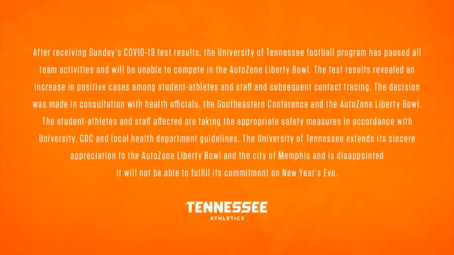 Statement From Tennessee Athletics and Head Football Coach Jeremy PruittStatement From Tennessee AthleticsUT graphic / Credit: UT Athletics“After receiving Sunday’s COVID-19 test results, ...
