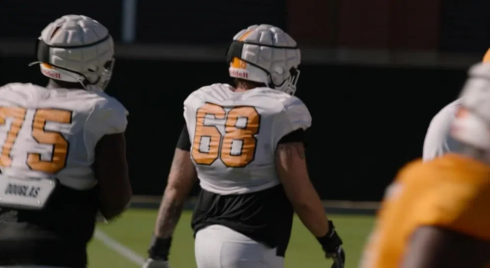 Here’s video of Tennessee’s Monday practice ahead of the season opener vs. South Carolina. Video courtesy of UT Athletics.Vols OLs Jerome Carvin and Cade Mays / Credit: UT Athletics