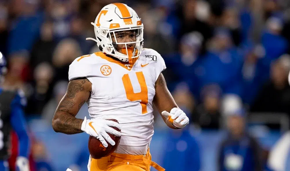 LEXINGTON, KY – NOVEMBER 09, 2019 – Tight end Dominick Wood-Anderson #4 of the Tennessee Volunteers during the away game between the Kentucky Wildcats and the Tennessee Volunteers at Kroge...