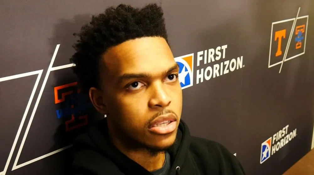 Volunteers men’s basketball guard Josiah-Jordan James spoke to the media after Tennessee defeated Florida 63-58 Saturday afternoon in Knoxville.Vols G Josiah-Jordan James / Credit: 99.1 The Spor...