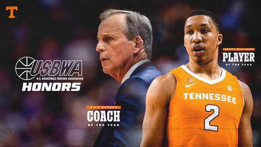 Credit: UT AthleticsThe United States Basketball Writers Association announced its 2018-19 All-District Teams Tuesday, and Tennessee swept both major awards in District IV.Junior forward Grant William...