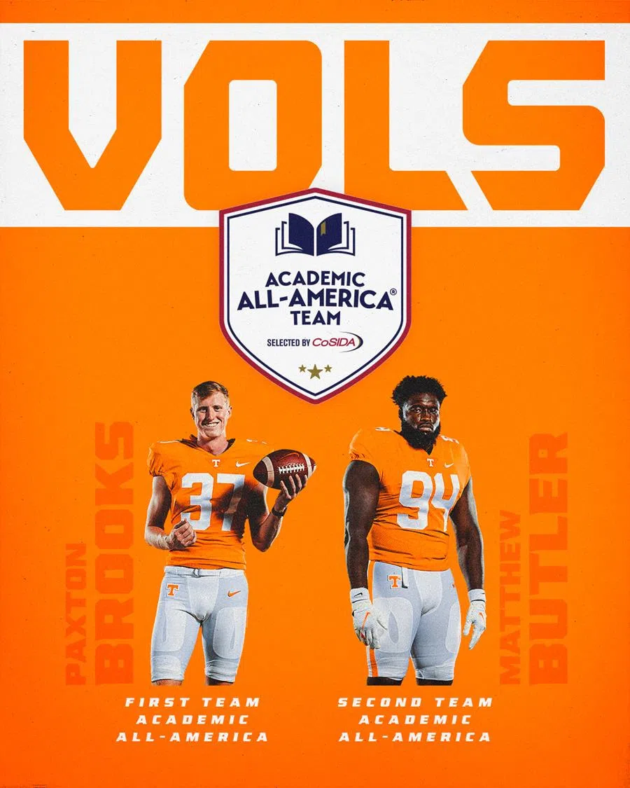 AUSTIN, Texas - The College Sports Information Directors of America (CoSIDA) announced Wednesday that Tennessee football seniors Paxton Brooks and Matthew Butler have been sel...