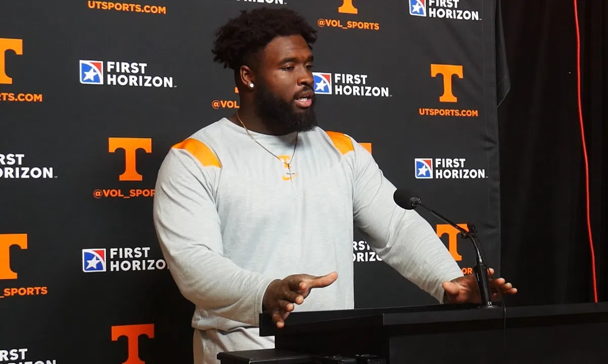 Tennessee defensive lineman Caleb Tremblay spoke with the media Tuesday ahead of Saturday’s regular season finale vs. Vanderbilt. Vols DL Caleb Tremblay / Credit: 99.1 The Sports Animal