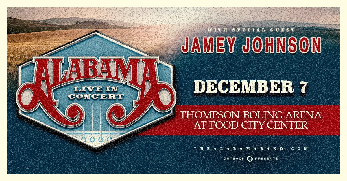 Outback Presents Alabama with Special Guest Jamey Johnson Thompson Boling at Food City Center Sunday, Dec 7th Get Tickets!