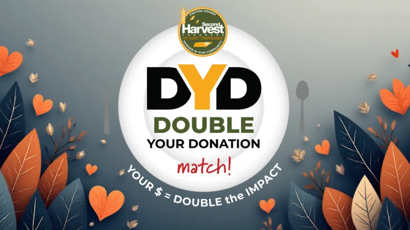 It's Second Harvest of East Tennessee's 15th annual Double Your Donation Day - where every gift made is doubled meaning you have a chance to make your impact go twice as far. Typically, $1 provides 3 meals, but during DYD, $1 provides 6 meals. This season, Second Harvest is facing significant need as our neighbors have...